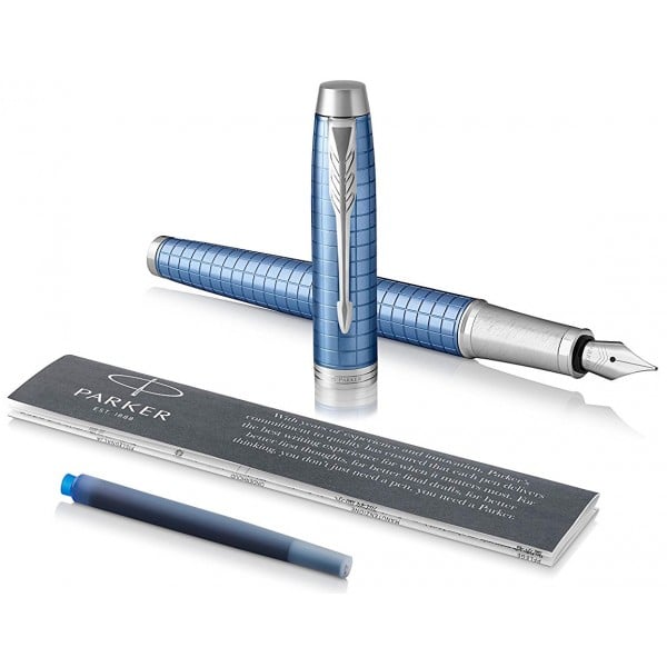 Parker IM 17 Premium Blue CT FP F. Материал корпуса Анодированный алюминий. Материал пера Сталь. Материал покрытия Матовое покрытие. Отделка деталей Хром(Никель). Цвет деталей Белый. Цвет колпачка Синий. Цвет корпуса Синий. Цвет пера Белый. Механизм Колпачок.