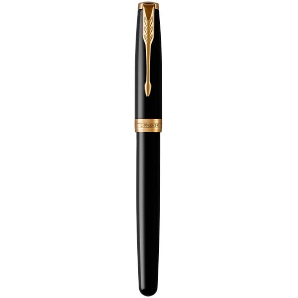 Ручка роллер Parker SONNET 17 Black Lacquer GT RB 86 022 демонстрирует нам все превосходства пишущих инструментов. Солидные визуальные свойства. Латунный корпус, покрытый глянцевым лаком с безупречным блеском. Детализация выполнена позолотой. Корпусная основа черного цвета. Тип закрытия – колпачок. Наименование бренда на кольцевой части. Роллер – это современная комбинация перьевых и шариковых моделей. Красивые линии как от пера, и более упрощенная версия эксплуатации, как у шариковых моделей.