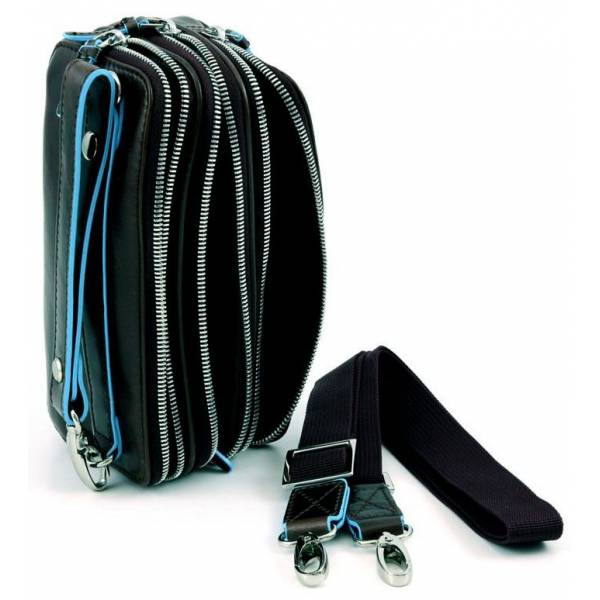 Piquadro BL SQUARE/Black Сумочка на 3 отдел. с молнией на ремне (19,5x10x6,5)
