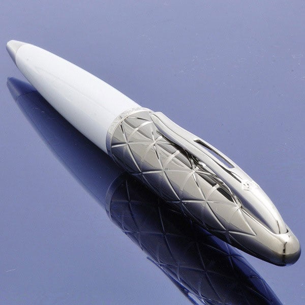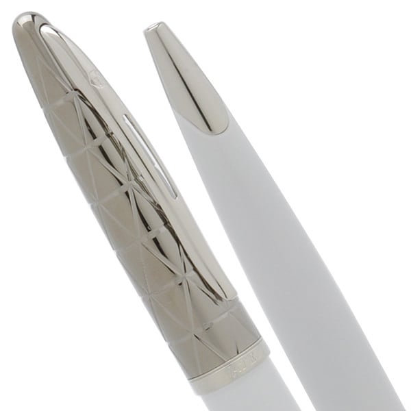 Отделка: оригинальная гравировка и специальное покрытие PVD на колпачке, многослойное покрытие высококачественным и особо прочным лаком изумительного белого цвета бареля, “брендованное кольцо”, отдельные элементы дизайна – посеребрение.