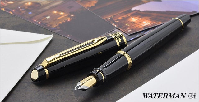 Перьевая ручка Waterman EXPERT Black FP 10 021. Перо: 23 К позолота. Корпус: многослойное лаковое покрытие. Особенности: возможно использование. чернильных баллончиков. Отделка: 23 К позолота.