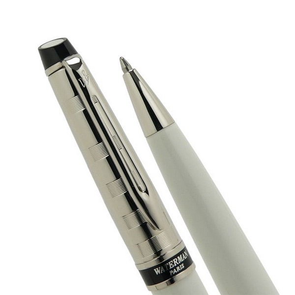 Шариковая ручка Waterman Expert Deluxe White CT 20 039. Корпус : ювелирная латунь. Отделка : многослойное покрытие высококачественным и сверхпрочным лаком, отдельные элементы дизайна – зеркальный хром, гравировка в виде поперечных колец на верхней части ручки. Цвет : White CT (жемчужно белый/серебристый). Механизм: поворотного действия. Толщина пишущего узла : Средний (М). Особенности: - используется стандартный стержень для шариковых ручек Waterman.