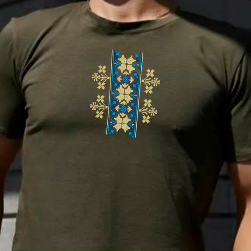 Чоловіча футболка з вишивкою в українському етно стилі. Тканина м'яка і приємна. Він виготовлений зі 100% бавовни. Футболка має круглий виріз. Ідеально підходить для повсякденного носіння і поєднується з джинсами, брюками, шортами. Така футболка при правильному догляді прослужить довго і може використовуватися цілий рік. Ви можете обрати футболку з представлених кольорів сорочки та кольору вишивки. Розмірна сітка показанана разом з фото. Якщо потрібен інший розмір, задавайте питання, запропонуємо варіанти. ДОГЛЯД: - Машинне або ручне прання при +40°C в делікатному режимі. Сильно не скручувати, не розтягувати. Не можна сильно терти і використовувати відбілюючі засоби. - Після прання футболку слід ретельно висушити. Не сушіть його під прямими сонячними променями. - Щоб не пошкодити вишивку на футболці, під час прасування рекомендується використовувати прасувальну дошку та парову праску. Ми будемо раді відповісти на ваші запитання. Не пропустіть нашу ексклюзивну пропозицію!