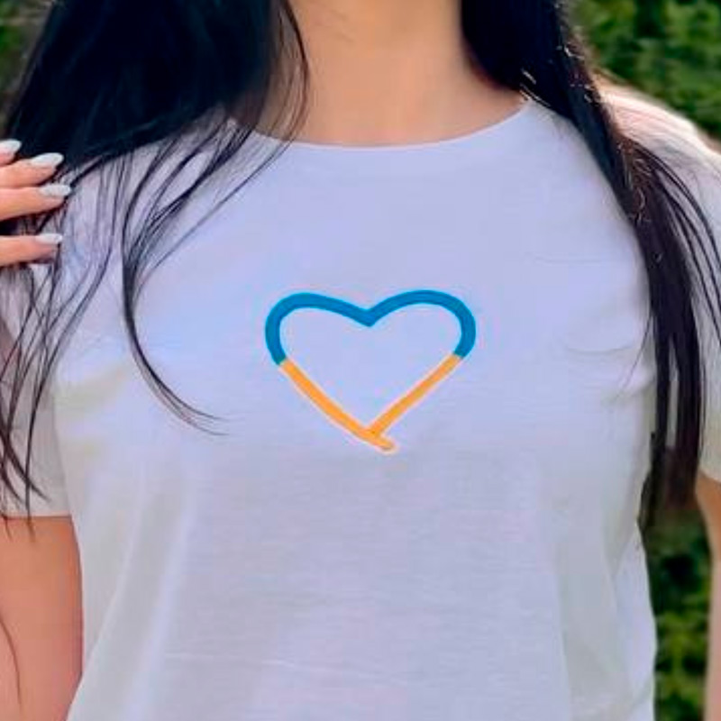 Пропонуємо жіночу футболку з вишивкою. На футболці вишите серце в кольорах державного прапора України. Тканина м'яка і приємна на дотик, 100% бавовна. Ви можете замовити будь-який колір вишивки! Він ідеально підходить для повсякденного носіння і може поєднуватися з джинсами, брюками або спідницею. Така футболка при правильному догляді прослужить довго і може використовуватися цілий рік. Ви можете вибрати футболку з представлених кольорів. Розмірна сітка вказана для різних країн. Якщо потрібен інший розмір, задавайте питання, запропонуємо варіанти. ДОГЛЯД: - Машинне або ручне прання при +40°C на делікатному режимі. Сильно не скручуйте, не розтягуйте. Не можна сильно терти і використовувати відбілюючі засоби. - Після прання футболку необхідно ретельно висушити. Не сушіть його під прямими сонячними променями. - Щоб не пошкодити вишивку на футболці, під час прасування рекомендується використовувати прасувальну дошку та парову праску. Ми будемо раді відповісти на ваші запитання. Не пропустіть нашу ексклюзивну пропозицію!