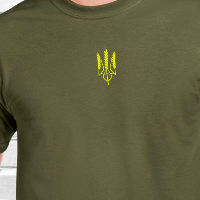 Пропонуємо чоловічу футболку з вишивкою. На футболці вишитий тризуб – державний герб України. Україна – країна з родючими ґрунтами, в якій вирощується багато пшениці, тому в дизайні використані колоски пшениці. . Тканина м'яка і приємна. Він виготовлений зі 100% бавовни. Футболка має круглий виріз. Ідеально підходить для повсякденного носіння і поєднується з джинсами, брюками, шортами. Така футболка при правильному догляді прослужить довго і може використовуватися цілий рік. Ви можете вибрати футболку з представлених кольорів. Якщо потрібен інший розмір, задавайте питання, запропонуємо варіанти. ДОГЛЯД: - Машинне або ручне прання при +40°C в делікатному режимі. Сильно не скручувати, не розтягувати. Не можна сильно терти і використовувати відбілюючі засоби. - Після прання футболку слід ретельно висушити. Не сушіть його під прямими сонячними променями. - Щоб не пошкодити вишивку на футболці, під час прасування рекомендується використовувати прасувальну дошку та парову праску. Ми будемо раді відповісти на ваші запитання. Не пропустіть нашу ексклюзивну пропозицію!