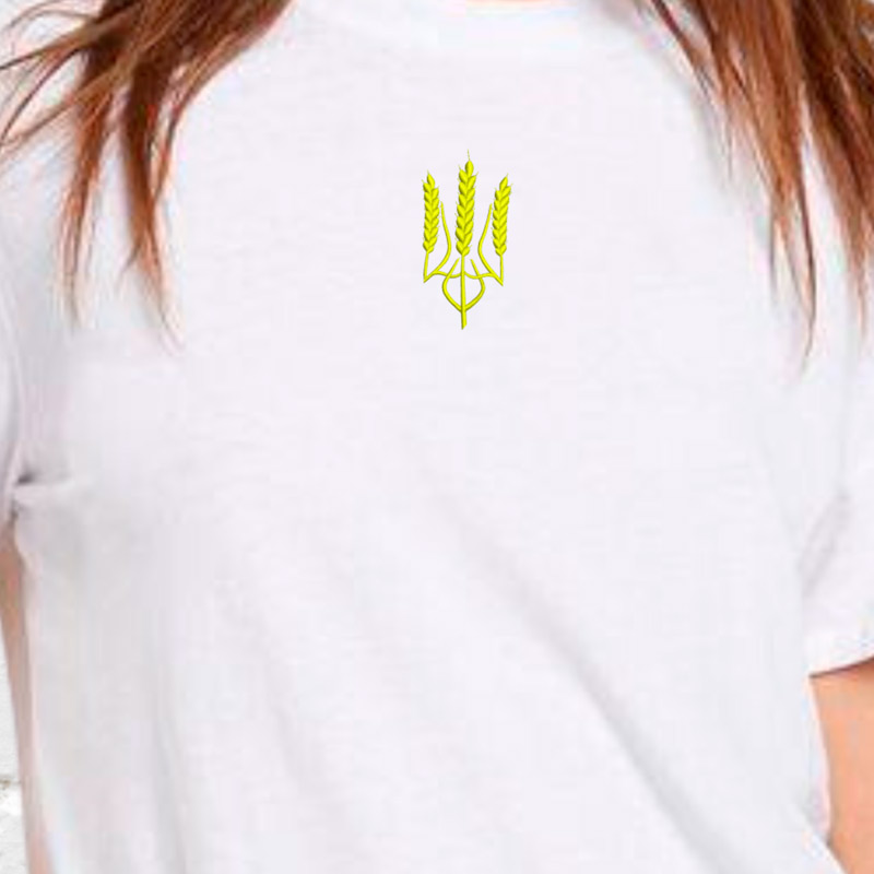 Пропонуємо жіночу футболку з вишивкою. На футболці вишитий тризуб – державний герб України, в дизайні використані колоски пшениці. Тканина м'яка і приємна. Він виготовлений зі 100% бавовни. Футболка має круглий виріз. Ідеально підходить для повсякденного носіння і поєднується з джинсами, брюками, шортами. Така футболка при правильному догляді прослужить довго і може використовуватися цілий рік. Ви можете вибрати футболку з представлених кольорів. Якщо потрібен інший розмір, задавайте питання, запропонуємо варіанти. ДОГЛЯД: - Машинне або ручне прання при +40°C в делікатному режимі. Сильно не скручувати, не розтягувати. Не можна сильно терти і використовувати відбілюючі засоби. - Після прання футболку слід ретельно висушити. Не сушіть його під прямими сонячними променями. - Щоб не пошкодити вишивку на футболці, під час прасування рекомендується використовувати прасувальну дошку та парову праску. Ми будемо раді відповісти на ваші запитання. Не пропустіть нашу ексклюзивну пропозицію!